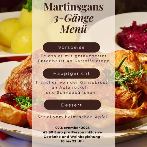 Menüabend Martinsgans (07.11.2025) inkl. Getränke*